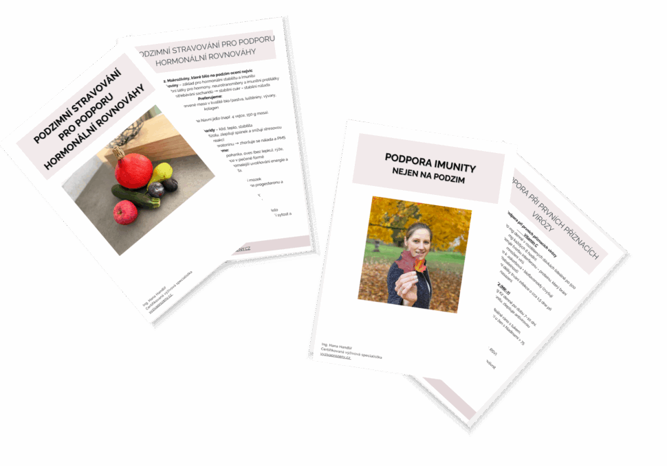 - 2 x PDF průvodce: Podzimní imunita a hormony a Jak jíst na podzim pro hormonální rovnováhu, jak konkrétní potraviny zařadit do jídelníčku - praktické tipy, informace