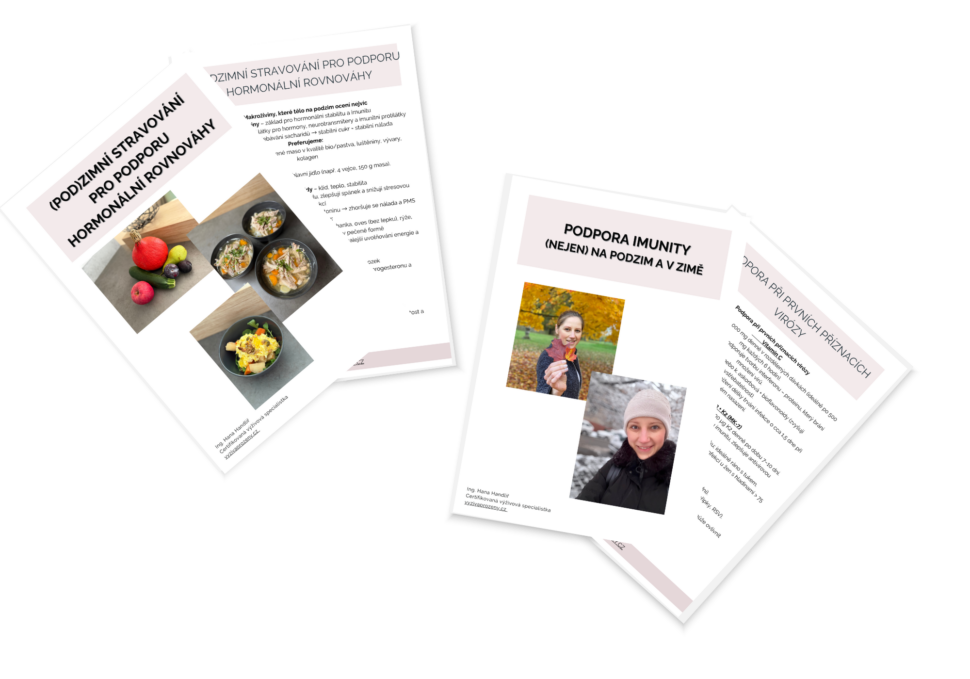 - 2 x PDF průvodce: Podzimní imunita a hormony a Jak jíst na podzim a v zimě pro hormonální rovnováhu, jaké konkrétní potraviny zařadit do jídelníčku - praktické tipy, informace