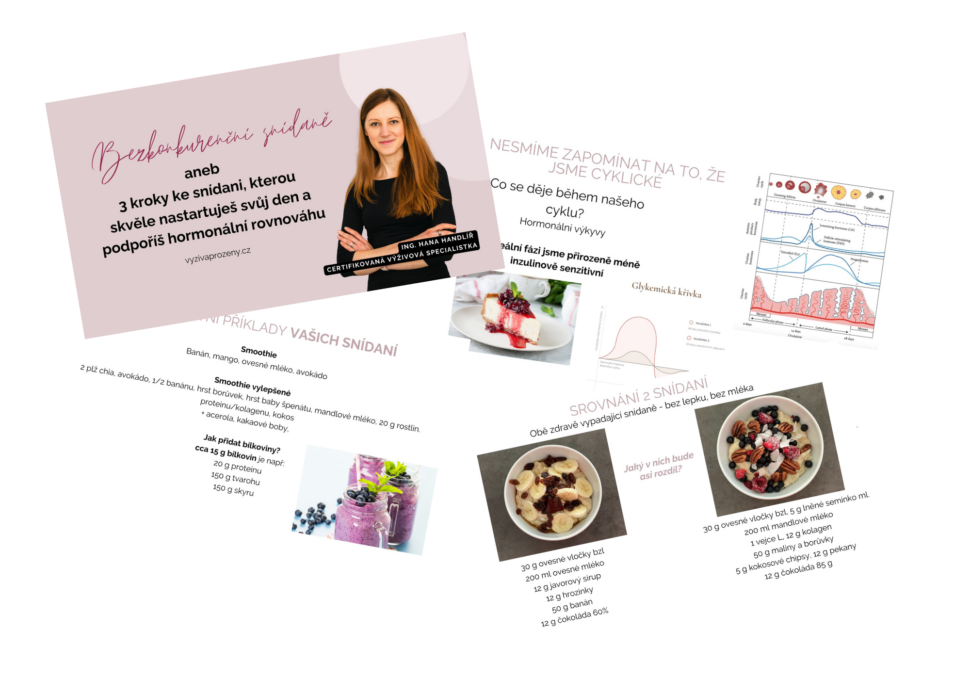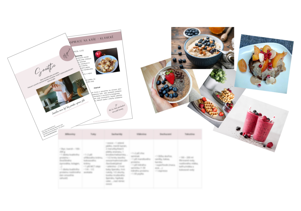 Dostaneš také inspiraci na jednoduché snídaňové kombinace + jednoduché recepty (bez lepku a klasického mléka).
